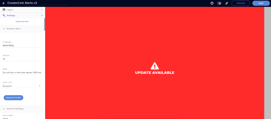 A new overlay - CreatorCoin Alerts v2 should show up, upon which click edit. This interface should open.