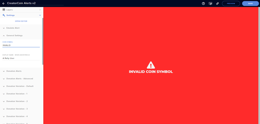 – Coin Symbol: Creator Coin Symbol – Display Name - When Anonymous: Name to display in the Alert when fans choose to keep their donation anonymous.