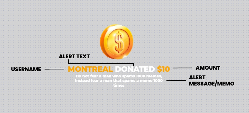 – Alert Message: The first line of text in the alert, fully customizable in nature. Available variables - {username}, {cc}, {usd}, {/} - New Line